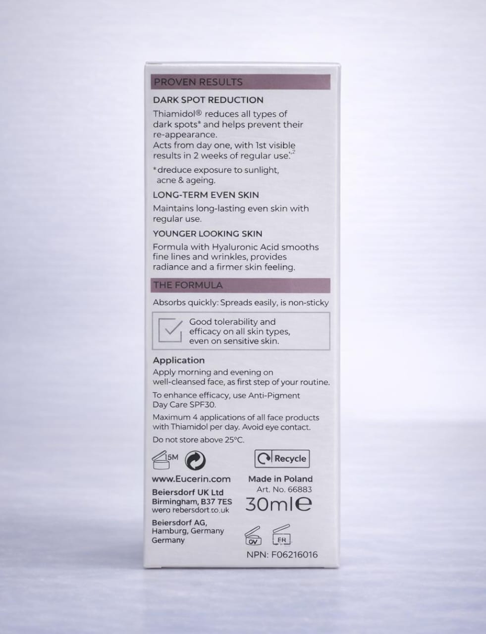 • Do not exceed four applications per day of products containing Thiamidol®