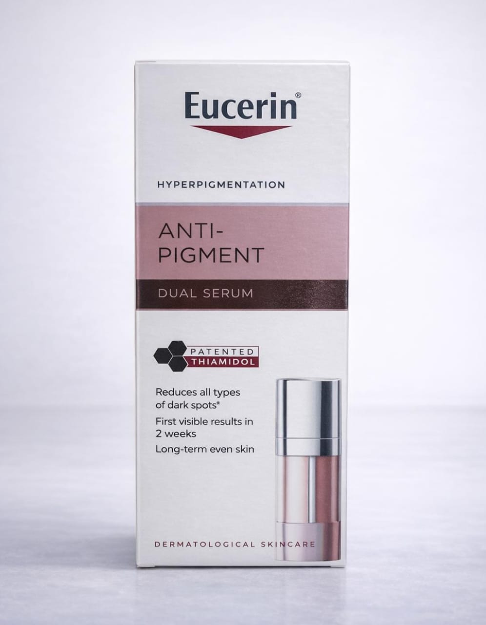 Eucerin Anti-Pigment Dual Serum is a dermatologically tested formulation developed to support the appearance of a more even skin tone. It is specially designed for skin affected by hyperpigmentation such as dark spots caused by sun exposure, acne marks, and ageing. The lightweight dual-action serum absorbs quickly into the skin and is suitable for daily use as part of a regular skincare routine. With continued use, it helps improve skin clarity and overall radiance.