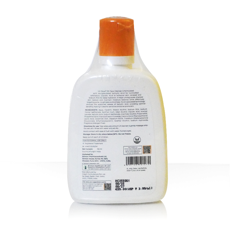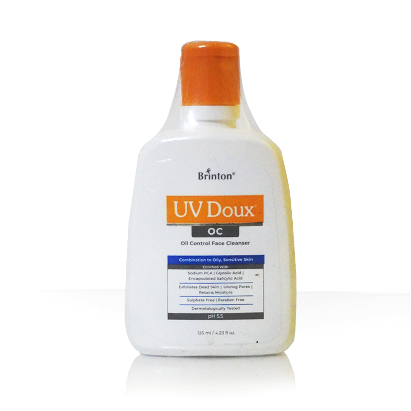 Brinton UV Doux OC is a gentle yet effective face cleanser designed for oily and sensitive skin. Its formula helps reduce excess oil without stripping the skin’s natural moisture. Enriched with exfoliating and hydrating ingredients, it helps clear clogged pores, remove dead skin cells, and maintain a healthy skin balance. With a skin-friendly pH of 5.5, this cleanser supports a clean, fresh, and comfortable feel after every wash.